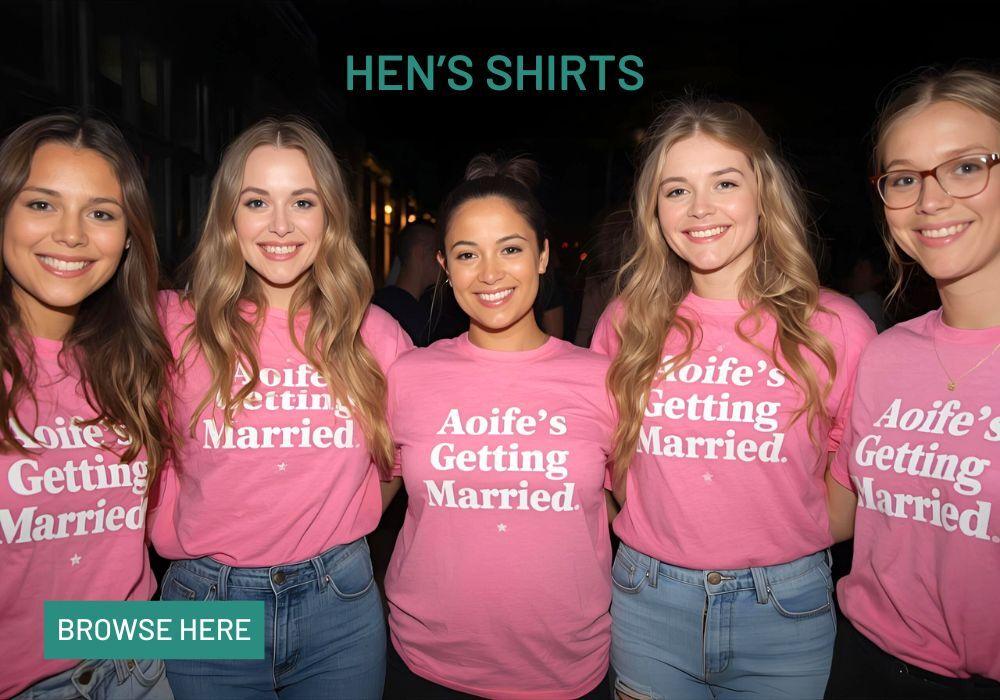 Looking for a fun group shirt to wear out on your Stag or Hen Parties? We customise shirts so that you can find each other easily out in the crowd and have a forever keepsake of your besties wedding party. Our range includes various sizes and colours to suit your wedding theme. Don't see the style or colour of shirt you are looking for? No problem. get in touch with our team and they will source the item for your special day out.